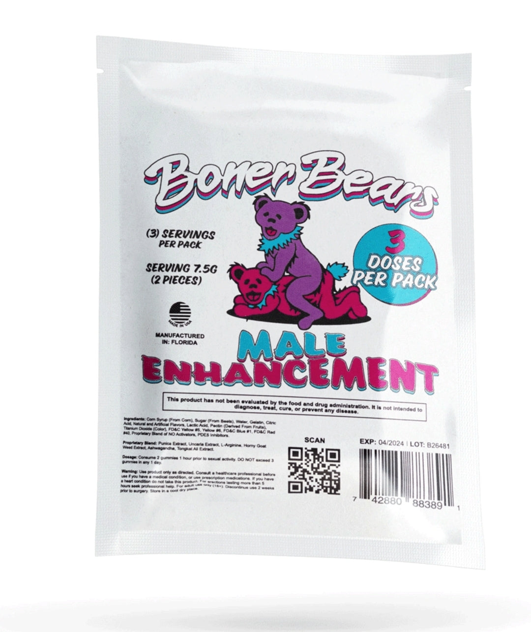 Do not take other supplements or medications with Boner Bears products. Consult a physician if you are on any other supplements or medications or have any health conditions.